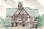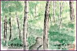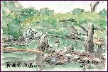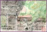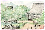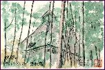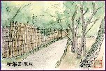 桂離宮を観たあと立ち寄りました。天龍寺は14世紀に建立されたとのこと、現在は世界遺産(世界文化遺産)に登録されています。この絵は中心的建物の大方丈から北の方向を観たものです。手前は曹源池で、後方は嵐山の一部のようです。庭園の北側には小山があり、そこでも1枚描きましたが今回はこの1枚のみ紹介しました。