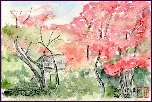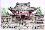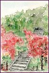 永観堂では何枚かを描きましたが、いずれも紅葉中心で変化が無いので上とこの2枚を掲げました。また描くことはできなかったですが本尊は「見返り阿弥陀」といわれる首を左に振った阿弥陀如来像が有名です。