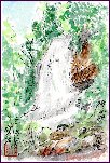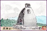 平等院は過去にも拝観していますが、今回は80代後半の叔母を伴って訪れました。ここは平安時代後期、天喜元年(1053)に、時の関白藤原頼通によって平等院に建立された阿弥陀堂です。この鳳凰堂は池の中島に建てられており、建物は池に映っていますが、この絵では池まで描ききれませんでした。