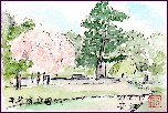 修学院離宮は上、中、下の三つの離宮に分かれていて、それぞれを松並木の道がつなぐ造りになっています。修学院離宮でも、一番の見所は上離宮の回遊式庭園と言われ、その途中から観た浴龍池の眺めはこの絵ではうまく表現できなかったですが、非常に感動的でした。