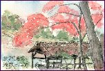 この絵も修学院離宮の庭園を回遊しながら見かけた場所です。庭園の周囲を回遊すると周りの風景が変化し、並木の紅葉にも目新しさが感じられました。修学院離宮の秋が一つ一つ美しく新しい感動を与えてくれる、本当に良いひと時を過ごすことができました。