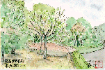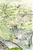 皇居東御苑のものは前回のこのページでも1枚乗せましたが、この絵も東御苑の中を散歩して描いたものです。二の丸庭園は自然の風景を余り手を加えずに残しているのが特徴ですが、この部分はきれいに整理された典型的な和風庭園です。私が池の近くの芝生に入ってこの絵を描いていたところ、パトロールの男性に芝生からでるように注意を受けました。ほかの場所でこのように規制を無視して立ち入っても注意を受けたことはなかったので、さすが?ここは厳しいなと実感した次第です。 |