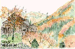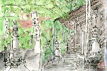 この寺院は延暦13年(798年)の創建とされ、天台宗の由緒あるお寺で西国三十三ヵ所満願霊場としても知られているとのことです。中には十一面観音像などの重要文化財が安置されているそうで、お寺の構えも立派です。この絵を描いたときはまだ紅葉に少し早かったものの、観光客は相当なものでした。次の機会にはぜひ内部も拝観したいものです。 |