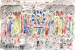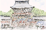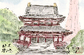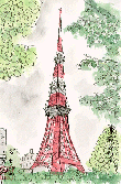 昭和33年に建設された333メートルの電波塔で、都内のかなり遠方からも目に入ります。このように絵にしてみると東京のランドマークの代表としての貫禄?がうかがえます。私はまだ昇ったことが無いのですが、地上250メートルの特別展望台からの眺めはさぞ格別であろうと思います。 |