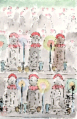 梅雨の間のどんよりした空の下で、真夏を待ちきれず裸になって水と戯れる子供たちの様子です。遊園地での光景ですがモデルがあちこち動き回るためまとめるのに苦労しました。 |