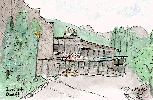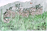 バンフ滞在の4日間宿泊したホテルです。この絵は本館部分を描いたものですが、実は私たちの部屋は「スイス・ウイング」といってこの建物に隣接した安価なロッジで、冷房がないため窓を明けると本館のエアコン用冷却ファンの騒音が大きくて悩まされました。 |