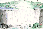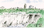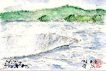 カナダ滝は頂部の「テーブル・ロック」と言われる巨大な岩石がせり出しており、このため川の水が滝になだれ落ちる瞬間が観察出来ます。この絵は見ているだけでも吸い込まれそうな滝の落ち口を描いたものです。 |