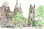1827年に創立され学生数約43,000人、キャンパス数約170のカレッジに分かれたカナダ最大規模を誇る大学で、とくに医学では大きな功績を残しているそうです。私が描いたキャンパスはこのように教会風の建築物など立派な建物と広大な緑地がありました。あちこちを飛び回っているリスが印象的でした。 |
