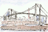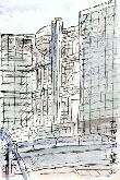1月中旬の3連休を東京方面で過ごし、東京臨海副都心と鎌倉の寺寺をめぐって何枚かの絵を描きました。臨海副都心はバブル初期の平成の初めに開発が開始されバブル崩壊後は開発がペースダウンしたものの、近代的な建築物や施設が立ち並ぶ現代文化の象徴ともいえる街です。鎌倉は今から700年以上も前の古い文化とたたずまいを残しています。一日ずつまったく違う文化に接して絵を描くというのは私のこの上ない幸せで、また天候にも恵まれた暖かい日でしたので、足を使っての葉書絵制作には最適でした。