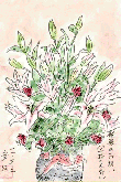 もう5月のページをお届けすることになりました。しかし葉書絵は1月の終わりから3月にかけて描いたものをかなり残しているのと、2月末から3月初めに個展を開催して多くの方から頂いたお祝いの花を描きましたので、その一部をご紹介することにしました。そのような訳で、今回はかなりバラエティーに富んだ作品集になりましたのでお楽しみ下さい。