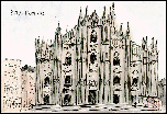 ミラノはイタリアにおける商業の中心ですが、宗教的な建築物も多く絵の題材には事欠かない街です。