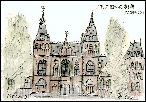 「カテドラル(グラナダ)」 : (1997.9.26) この建物はカトリック両王の命令を受けて回教寺院を潰して1504年着工し、200年後の1704年に完成したとのことです。この絵は建物の外側のほんの一部分ですが、内部はルネッサンス様式の115.4m×67.25mという堂々としたもので、主祭壇を中央にし周囲の壁に沿って幾つかの小祭壇が組み込まれており、スケールの大きさに目を見張りました。 | |