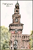 「スフォルツェスコ城(ミラノ)」: (1997.9.29) ドウオーモから北西方向に進むとこの城に突き当たります。ビスコンテイ家の城を15世紀にスフォルツア家が改築したものとのことです。頑丈な構えですが中には美術館があり、ミケランジェロ生前最後の未完成彫刻「ロンダニーニのピエタ」も展示されています。 | |
