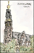 「アムステルダム西教会」 : (1997.10.2) アムステルダムの私の宿泊したホテルのすぐ近くにあり、オランダガ輩出したレンブラントが葬られています。1631年に完成したルネッサンス様式の教会です。高さ85mの塔の上に当時のオーストリア皇帝マクシミリアンの金色の王冠が載せられ、オーストラリア支配時代の片鱗を残しているわけです。 | |