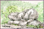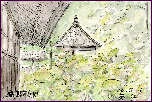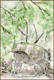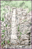 「岩屋堂(瀬戸市」):(1998.5.2) 愛知県瀬戸市の北東部に大岩が重なって出来たお堂があり、仏像がまつってあります。このお堂の由緒等については、そばに建てられている説明板の文字が薄れて判読出来ず、ご紹介は出来ませんが、高さが10m以上もある古墳を彷彿させる立派な岩屋です。この日は雨が降っていたためペンが使えず、鉛筆にしました。 | |