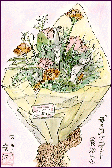 「母の日プレゼント(良治より)」:(1998.5.10) 同じく二男からのプレゼントです。上のものとは全く趣が違っています。このままでは日持ちがしないので、妻がバラなど一部の花をドライフラワーにして飾っています。 |