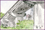 「関市内・庄中橋」:(1998.4.26) 岐阜県関市の南部を流れている津保川に掛かっている橋です。鉛筆を使いましたので、橋脚の間から見える近くのスーパーと鉄塔の一部との対比で、橋の頑丈さをを強調」した面白い構図になりました。 | |