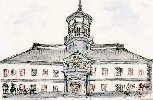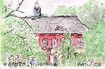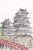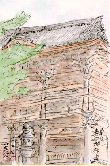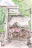 三重県桑名市の中心的な氏神です。例年7月31日・8月1日にこのお宮さんの神事である「石取祭」が挙行されますが、私も初めててここにお参りしました。社殿はあまり大きくはないものの、上品な感じ?です。この絵を描いた午後6時頃、境内ではちょうどお祈りが始まったところでした。境内の周囲空は「石取祭」の太鼓と鉦(かね)の音がにぎわしく聞えてきました。 |