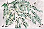 散歩途中で見かけた栗の花を初めて描きました。よく見ると実になる部分は花の枝との付け根部分にあり、既に小さなイガが形成されています。オシベとメシベが近接した受精しやすいこの構造は成熟した栗の実からは想像できません。 |