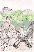 岐阜・三重両県境にある「木曽3川公園」での光景です。二人の男の子が父親から食事を与えられていました。優しそうな若いお父さんと子供の食事風景には微笑ましさを感じた反面、自然にお母さんはどうしたのだろうという疑問をいだいたことも事実です。この日は「海の日」の休日でしたが雨が降ったりやんだりの天候でしたので、来園者が少なくこのような家族は特に印象に残ったわけです。 |