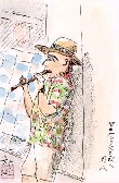 池袋駅前で見かけた1こまです。米国人らしき若い男性が手作りの竹製のサックスを実演販売していました。そばに置いてあった説明書によれば材料はハワイ産の竹材で、サックスの価格は確か1000円だったと思います。形は尺八に似ていますが音色は尺八のように渋い感じではなかったはずです。客は全くいなくて、やはり外人が1人だけ買って行きました。 |